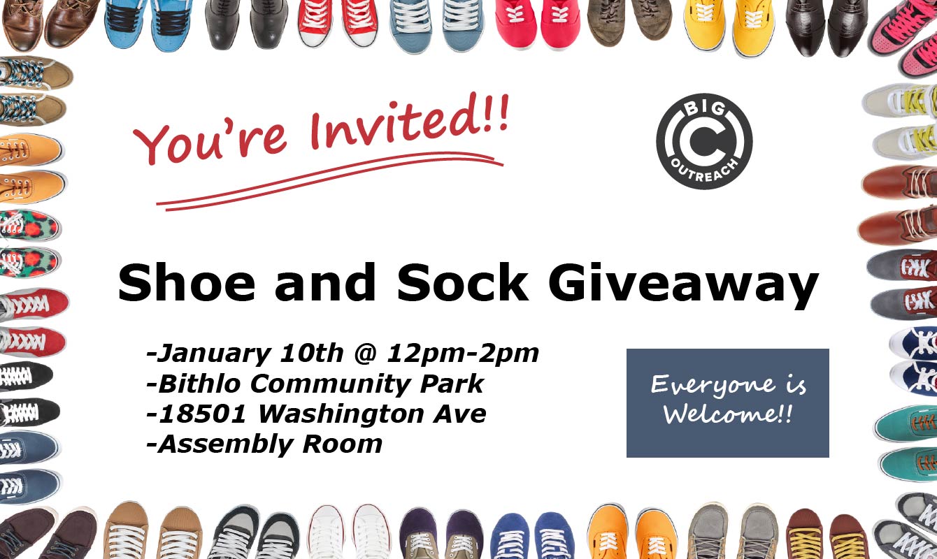 2026 Shoe and Sock Giveaway + Add to Google Calendar + iCal / Outlook export Date Jan 10 2026 Expired! Time 12:00 pm - 3:00 pm Location Bithlo Community Park 18501 Washington Ave, Orlando, FL 32820 Category AssistanceCommunityFood and Clothing Organizer Don Arnott Other Organizers Suzie Caffery Share this event